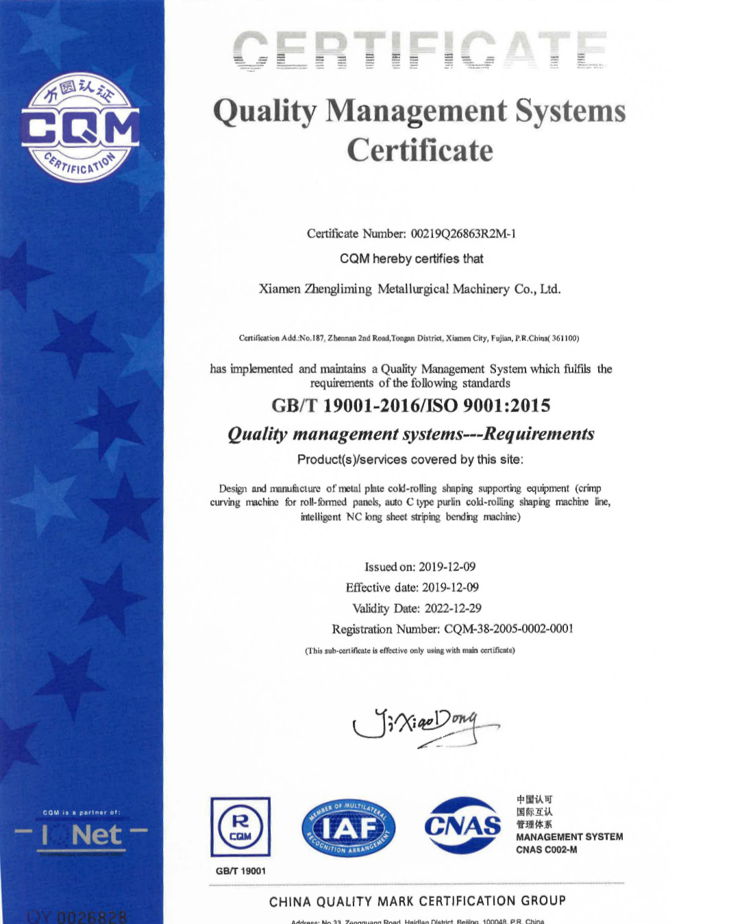 Yes, we are a factory. Xiamen Zheng Liming Metallurgical Machinery Co., Ltd, founded in 1989, has been in business for more than 30 years and covers an area of more than 100,000 square meters. It is the first manufacturer specializing in the manufacturing industry of various cold rolling mills/ roll forming lines in China.